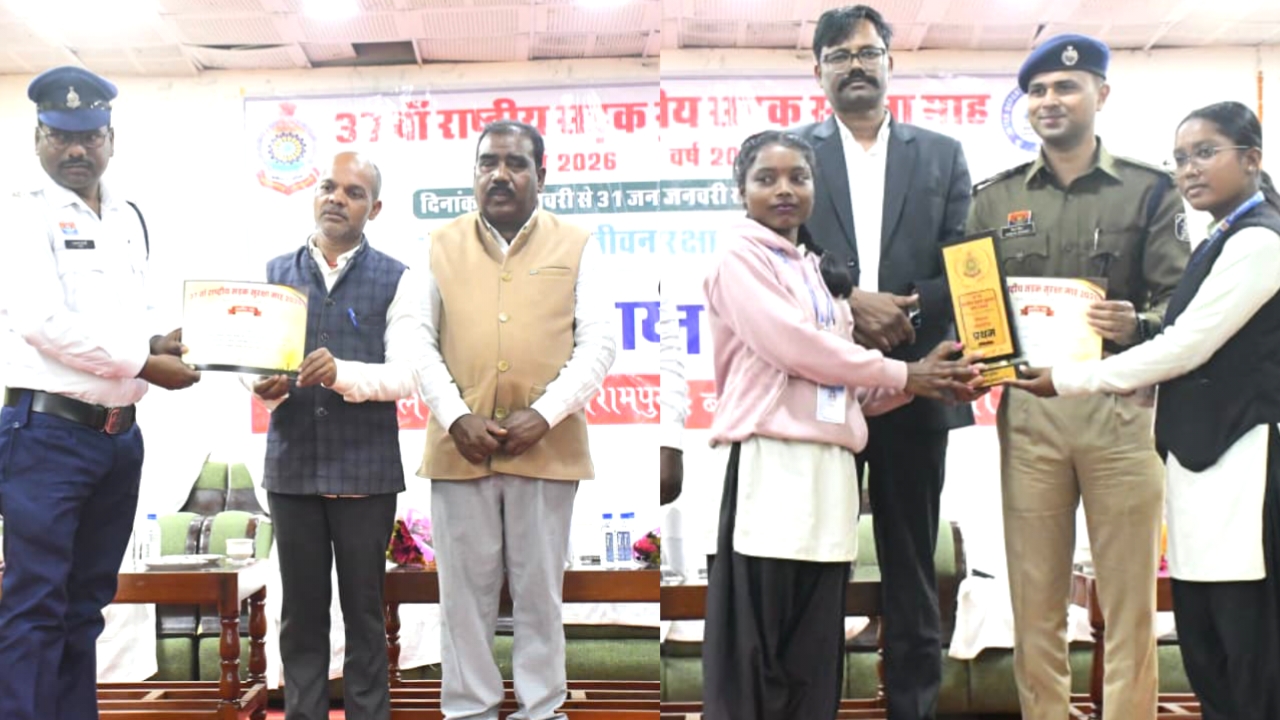 बलरामपुर रामानुजगंज जिले में 37 वां राष्ट्रीय सड़क सुरक्षा माह का समापन कार्यक्रम साप्ताहिक बाज़ार स्थित ऑडिटोरियम हॉल के सभाकक्ष में आयोजित किया गया। जिसमें कलेक्टर राजेन्द्र कटारा, पुलिस अधीक्षक वैभव बैंकर, नगर पालिका अध्यक्ष लोधी राम एक्का एवं नगर पालिका उपाध्यक्ष दिलीप सोनी मौजूद रहे। कार्यक्रम का शुभारंभ यातायात प्रभारी विमलेश कुमार देवांगन द्वारा माह भर आयोजित कार्यक्रमों की रूपरेखा के प्रस्तुतीकरण के साथ किया गया। समापन समारोह में पुलिस विभाग द्वारा समस्त अनुभाग मुख्यालयों में आयोजित विभिन्न जागरूकता कार्यक्रमों के बारे में बताया गया। इसमें यातायात जागरूकता थीम (हेलमेट/सीटबेल्ट/शराब सेवन निषेध), रील्स मेकिंग कॉम्पिटिशन, नो हेलमेट-नो पेट्रोल अभियान और सड़क सुरक्षा मितानों का सम्मान रहा। कार्यक्रम के मुख्य अतिथि कलेक्टर राजेन्द्र कटारा ने अपने संबोधन में कहा कि सड़क सुरक्षा केवल एक माह का अभियान नहीं, बल्कि यह जीवन भर अपनाई जाने वाली एक महत्वपूर्ण आदत होनी चाहिए। उन्होंने कहा कि जिले में सड़क दुर्घटनाओं को कम करने के लिए प्रशासन और आम जनता के बीच समन्वय अनिवार्य है। कलेक्टर ने विशेष रूप से युवाओं और अभिभावकों को प्रेरित करते हुए कहा कि वे स्वयं यातायात नियमों का पालन करें और दूसरों को भी जागरूक करें, ताकि बलरामपुर को दुर्घटना मुक्त ज़िला बनाया जा सके। पुलिस अधीक्षक वैभव बैंकर ने बताया कि सड़क दुर्घटना होने पर जो पहला घंटा होता है, उसे ’गोल्डन आवर’ कहा जाता है। यदि समय रहते घायल व्यक्ति को प्राथमिक उपचार दिया जाए, तो उसकी जान बचाई जा सकती है। ऐसे मददगार व्यक्तियों को पुलिस ‘‘गुड समेरिटन’’ कहती है।